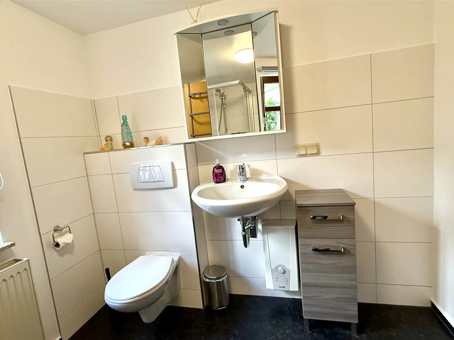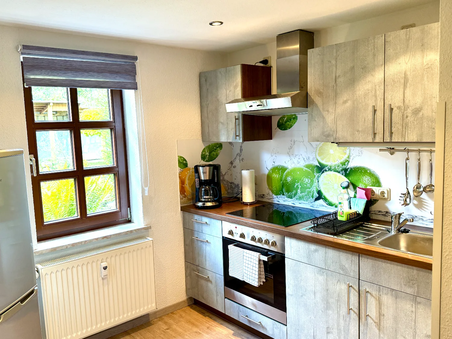 Das helle Bad ist mit Dusche und WC ausgestattet, und die praktische Küche ergänzt die Wohnräume ideal. Alle Räume sind liebevoll und wohnlich eingerichtet. Eine Sitzecke im Garten lädt zu entspannten Momenten im Freien ein.